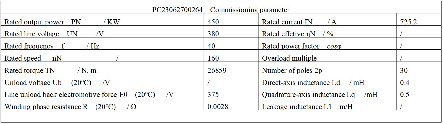 During the commissioning, it was found that the motor could not reach the rated speed under the heavy load. Even after enabling the field-weakening function, it doesn’t chance the situation. Measurements showed that the back electromotive force of the motor did not match the value provided by the manufacturer. The value was as high as 406V (the back electromotive force of a normal motor is approximately 90% of the rated voltage of the motor). When the input voltage of the frequency inverter remains at 395V, the busbar voltage of the frequency inverter drops from the normal 550V to around 510V under heavy load. Which means, when the motor approaches the rated speed and the output voltage is less than the value of back electromotive force, the motor will be out of control.