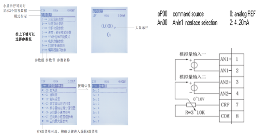模擬量輸入1通道接遠程4-20mA,AN1通道接口選擇set0設為4-20mA。