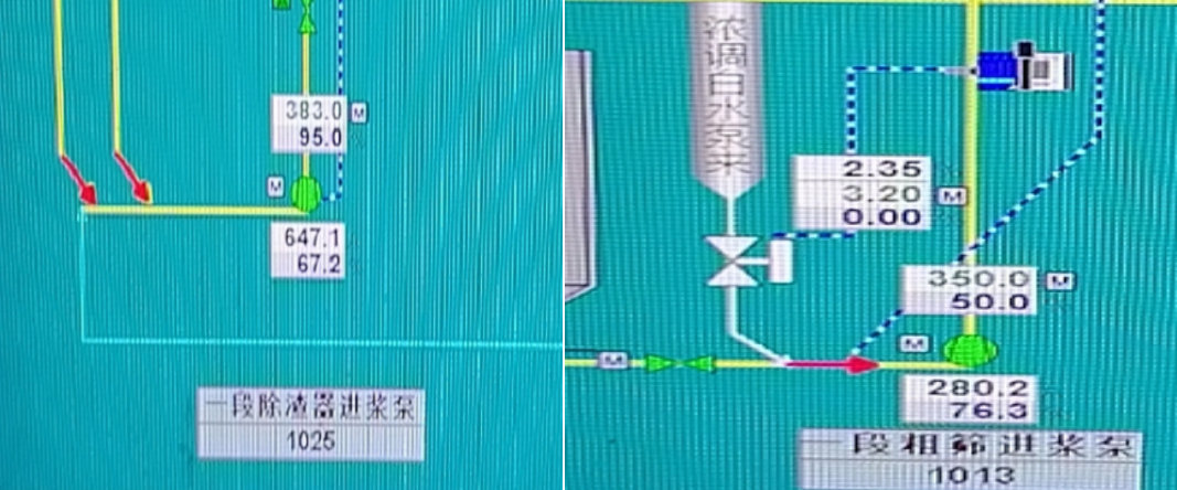 客戶公司選用國內領先的4400及5600高速紙機等生產設備,全部配備DCS全智能控制系統,實現全程智能化管理,控制室工作人員可以監視變頻器實際電流和進漿泵處壓力。當漿池液位不夠時,需要提升各進漿泵處的壓力,即提升電機轉速(通過4-20ma信號調節),當漿池液位達到要求時,需要降低各進漿泵處的壓力,即降低電機轉速(通過4-20ma信號調節)。