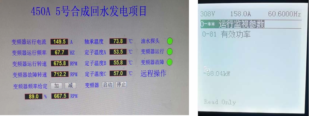 理想狀態(tài)下(水塔高10m,水流量每小時(shí)4000立方至5000立方),根據(jù) 掛在進(jìn)線電源的前端的電度表顯示,四象限變頻器機(jī)組每小時(shí)向電網(wǎng) 輸送電力在80-90KW左右,(變頻器在滿載情況下本身損耗不超過3%) 80kW/時(shí),相當(dāng)于80度電。算1.0塊/度,就是賺80塊/時(shí)。 一天運(yùn)行24小時(shí),相當(dāng)于2000塊/天。一年300天工作天,即60萬/年。